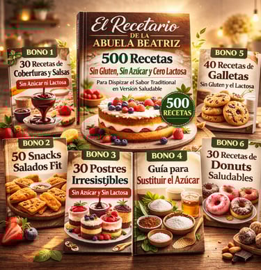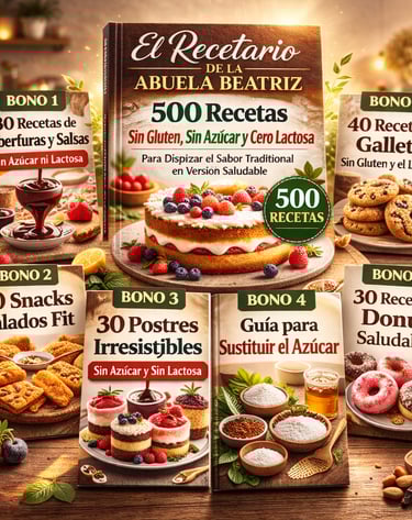 🎁 Bono 3: 30 postres irresistibles sin azúcar y sin lactosa, fáciles de preparar y llenos de sabor.